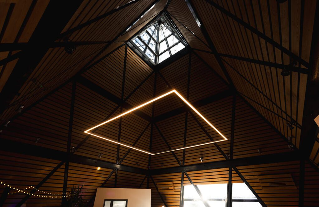 Die abendliche Feier fand in der Kuppel statt, einem weiteren Element dieses außergewöhnlichen Ensembles. Dort treffen Linien, Höhen und futuristische Formen auf warmes Licht und tanzende Menschen. Für Hochzeitsfotografie in Hannover ist dieser Raum eine absolute Seltenheit.