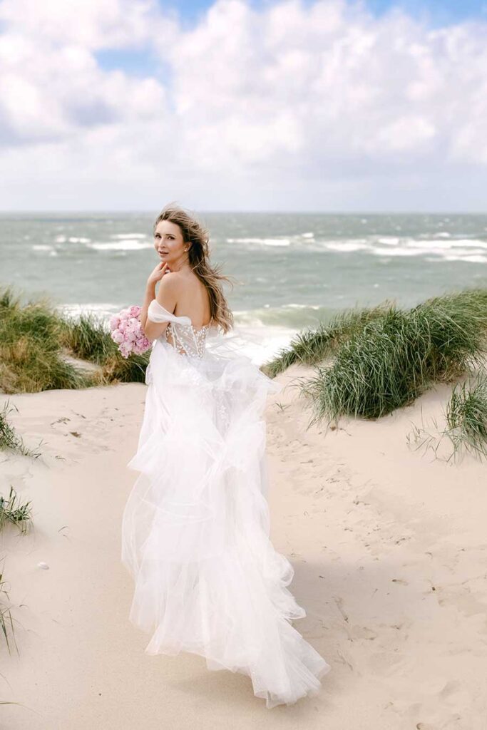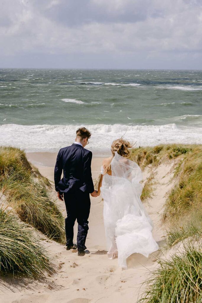 Für die Hochzeitsfotos zogen wir weiter zum Dikjen Deel (Strandübergang 56). Dieser Spot ist mein persönlicher Favorit für authentische Porträts. Warum? Weil die Natur hier die Regie führt.
